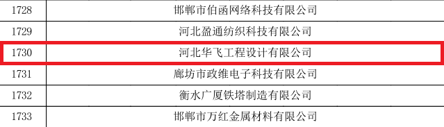 根據《高新技術企業認定管理辦法》,河北省工業和信息化廳等多部門聯合公布了一批高新技術企業認定名單,我司河北華飛工程設計有限公司(以下簡稱“華飛工程”)憑借雄厚的研發實力、持續的創新能力、優秀的科研技術成果,成功入選國家高新技術企業名單,正式邁入這一含金量極高的企業行列,榮譽證書于近日正式授予我司。